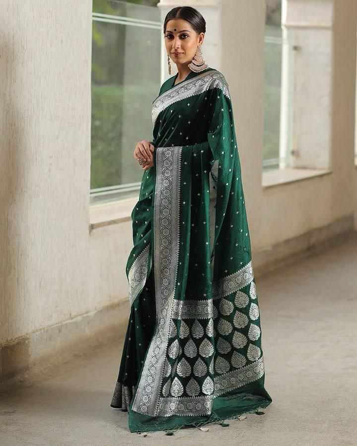MF 1680 GREEN BANARASI SOFT LICHI SILK SAREE