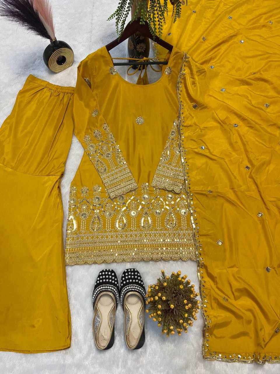 | Name : | MF 455 Heavy Natural Crep Silk Top With Sarara Plazo |